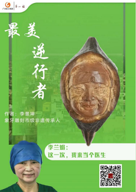 在共度時艱的關(guān)頭,穗聯(lián)公司多位非遺傳承人通過自身技能,向堅守在抗擊疫情、復(fù)工復(fù)產(chǎn)的一線工作者致敬。如牙雕傳承人李景坤創(chuàng)作了以猛犸象牙為原材料的《人間正道》猛犸牙雕面譜,運用淺浮雕技法將象征“賜福鎮(zhèn)宅圣君”的鐘馗像與正氣凜然的鐘南山像巧妙結(jié)合,以“現(xiàn)代鐘馗”比喻大醫(yī)精誠、奮力抗擊疫情的鐘南山院士。另一件是以圓雕技法刻畫李蘭娟院士形象的《最美逆行者》欖雕作品,作品重點刻畫了李院士因長時間戴口罩而形成壓痕的面部形象。