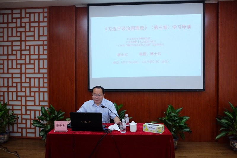 會議由公司黨委副書記、紀委書記、工會負責人歐陽蘭花主持,邀請了省青年講師團、市黨的十九大宣講團成員、華南農業(yè)大學唐土紅教授作專題輔導。會上,唐教授深入剖析了第三卷的內容要點,指出了怎么學,提出要堅持更高標準、更嚴要求、更實舉措,帶著信念學、帶著感情學、帶著使命學,自覺做習近平新時代中國特色社會主義思想的堅定信仰者和忠實踐行者。要融會貫通,將第三卷與第一卷、第二卷作為一個整體,真正做到讀原著、學原文、悟原理。要做到學習跟進、認識跟進、行動跟進,真正用黨的創(chuàng)新理論武裝頭腦,指導推動國有企業(yè)經營發(fā)展各項工作。