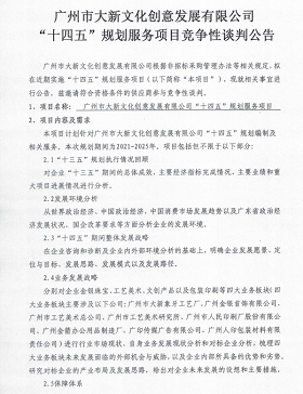廣州市大新文化創(chuàng)意發(fā)展有限公司“十四五”規(guī)劃服務(wù)項(xiàng)目競(jìng)爭(zhēng)性談判公告