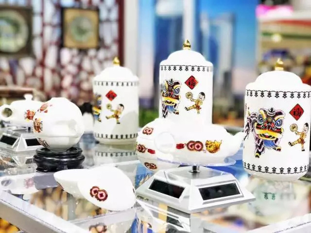 本次參展品種豐富、精品多多,除了廣彩、廣繡、木雕等精致細膩的傳統(tǒng)工藝作品,還展出符合現(xiàn)代審美的實用銀飾品。包括福版水壺、足銀保溫杯、足銀陶瓷茶具等生活用品,還包括項鏈、吊墜、手鐲等佩飾用品。