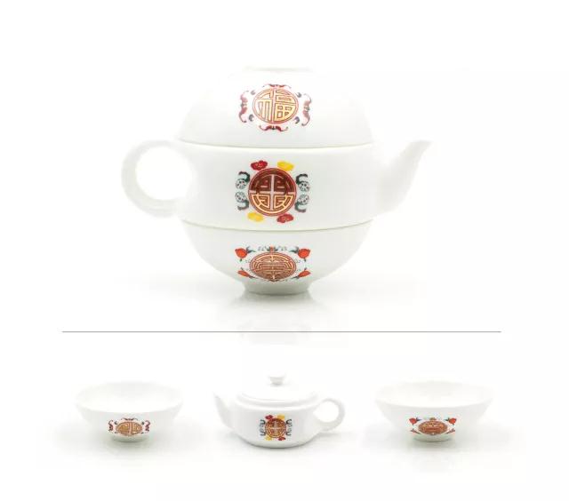 《福祿壽齊福壺》小巧玲瓏,茶壺和兩個(gè)茶杯連成一體,杯身和壺身分別應(yīng)用了精心設(shè)計(jì)的“福”“祿”“壽”圖案,盡顯對(duì)美好生活的向往和祝福。