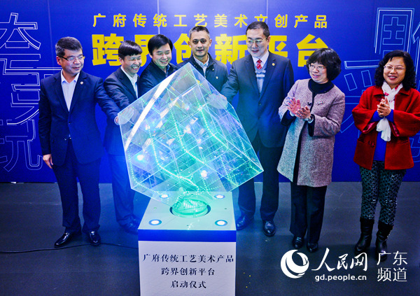 廣州傳統(tǒng)工藝美術(shù)文創(chuàng)產(chǎn)品跨界創(chuàng)新平臺(tái)啟動(dòng)儀式現(xiàn)場(chǎng)。