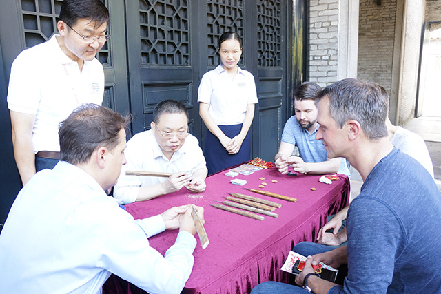 9月15日上午,“世界航線發(fā)展大會”的貴賓一行數(shù)十人來到廣東民間工藝博物館(陳家祠),參觀并體驗了以象牙果雕刻、廣州欖雕等為代表的“第一?!眰鹘y(tǒng)民間工藝活動。“第一?!惫に嚸佬g(shù)大師李景坤、工藝美術(shù)技師楊建國現(xiàn)場演示了傳統(tǒng)手工技藝。